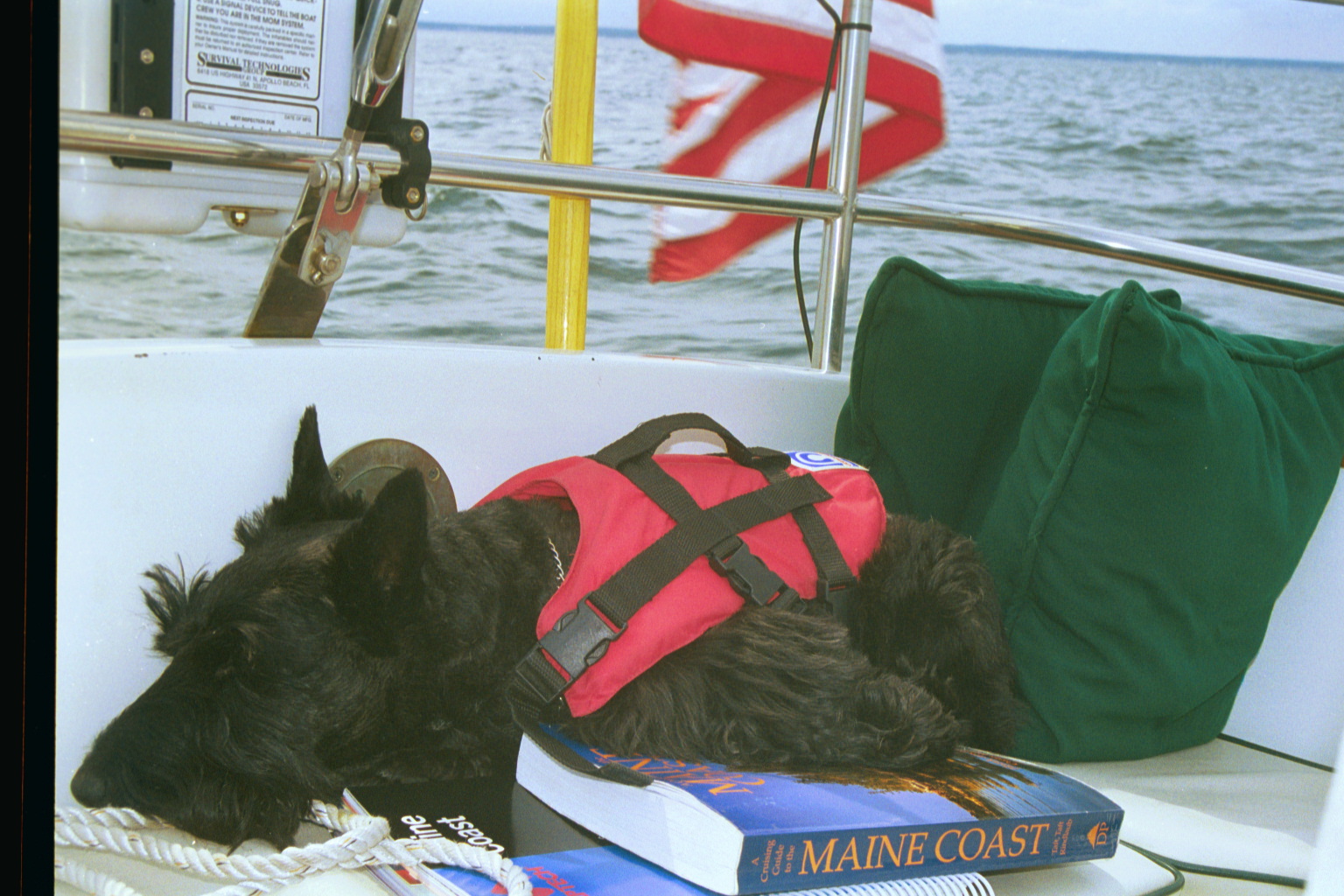 peacefully on top of the Cruising Guide while chugging
