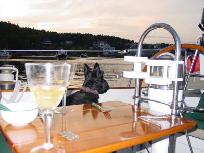 while the lobsters steam below for dinner. Alec